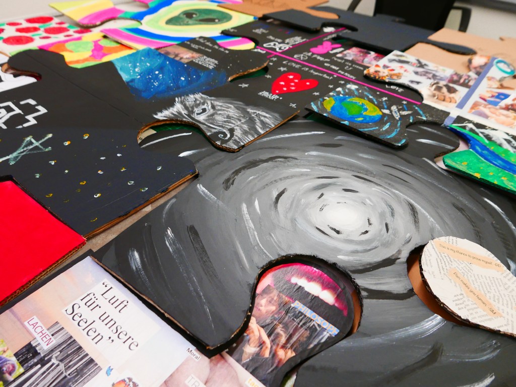 Ulla Rohr und Maria Isliker haben mit Ihren dialogischen Bilder die künstlerischen Akzente und Kontrapunkte gesetzt. Seit 10 Jahren kommunizieren die beiden Künstlerinnen per Briefpost zwischen Italien und Schweiz. In dem Austausch haben sie auch Fotografie mit einbezogen, die teilweise zeichnerisch ergänzt wurde. Zwei Welten begegnen sich – im Anliegen menschlichen Werte immer wieder ins Bewusstsein zu bringen.